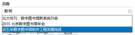 - 主页站点内容:也是令菜单项指向您个人主页站点的内容,但不限于首页,而是可以指向任何的普通页面、新闻、活动、演讲,等等。您甚至可以在“下一步”中选择“待创建的内容”,就此新建一个尚不存在的主页站点内容(可以是任何处于启用状态的内容应用)并为其添加菜单项。当然您也可以选择“已存在的内容”,并在“页面”(实际可能包含普通页面和其他各类内容)一栏开始填写该内容现有的标题,借此帮助选择那一件已有内容。下面两张图演示了选择的过程……